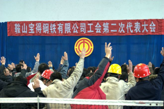 工會會員代表投下莊重的一票